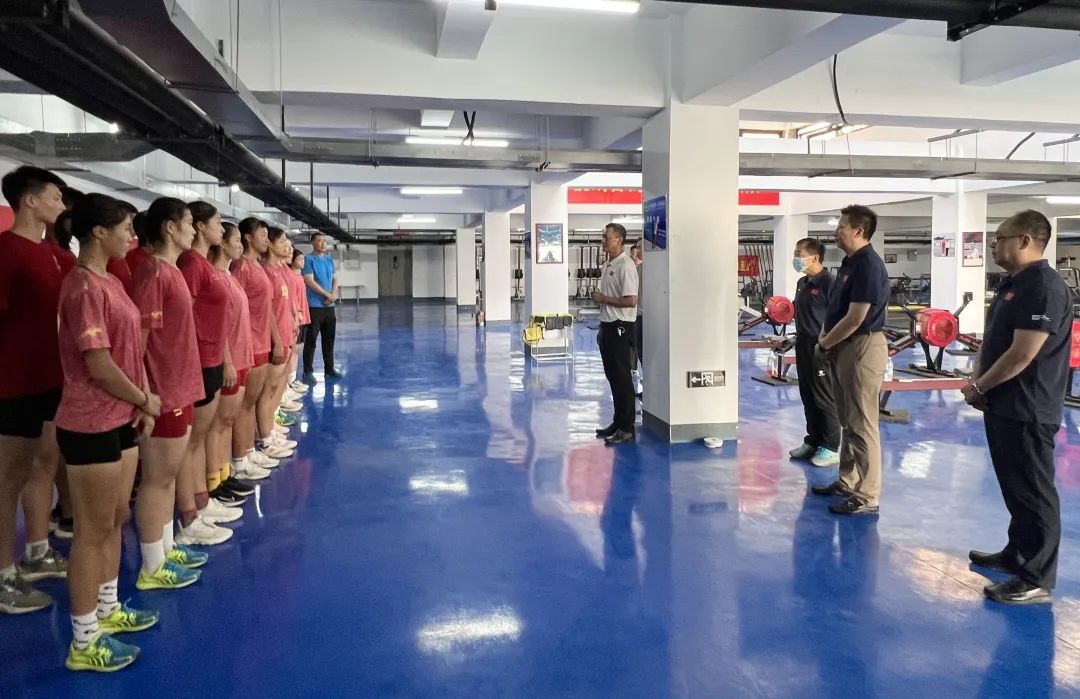 张立顺指出,要认真学习中华体育精神、女排精神、北京冬奥精神,深刻领悟其中的内涵。同时结合运动队的思想与作风建设向运动员们提出了三点要求:一是要树立远大理想。把祖国至上的爱国主义精神贯穿于日常训练的点滴,投身赛场,刻苦训练,奋勇拼搏,以优秀的成绩为国争光。二是要做到严格自律。在生活、训练上要以最高标准要求自己,用坚强的意志品质和严谨的训练作风,提高训练效果和质量,不断提升自身竞技水平。三是要展现良好的精神风貌。要注重文化的积累和思维的锻炼,在训练和比赛场上发挥自己的“谋”与“勇”,彰显高校运动队的昂扬风采,圆满完成暑期的训练任务,以优异的成绩迎接党的二十大胜利召开!