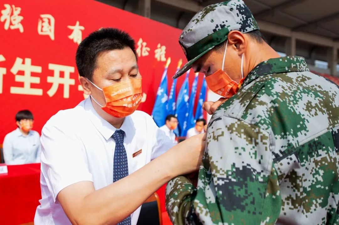 主席台前排就坐领导为新生佩戴校徽,赋予“天体人”这一承载着时代使命与体育荣光的称号。