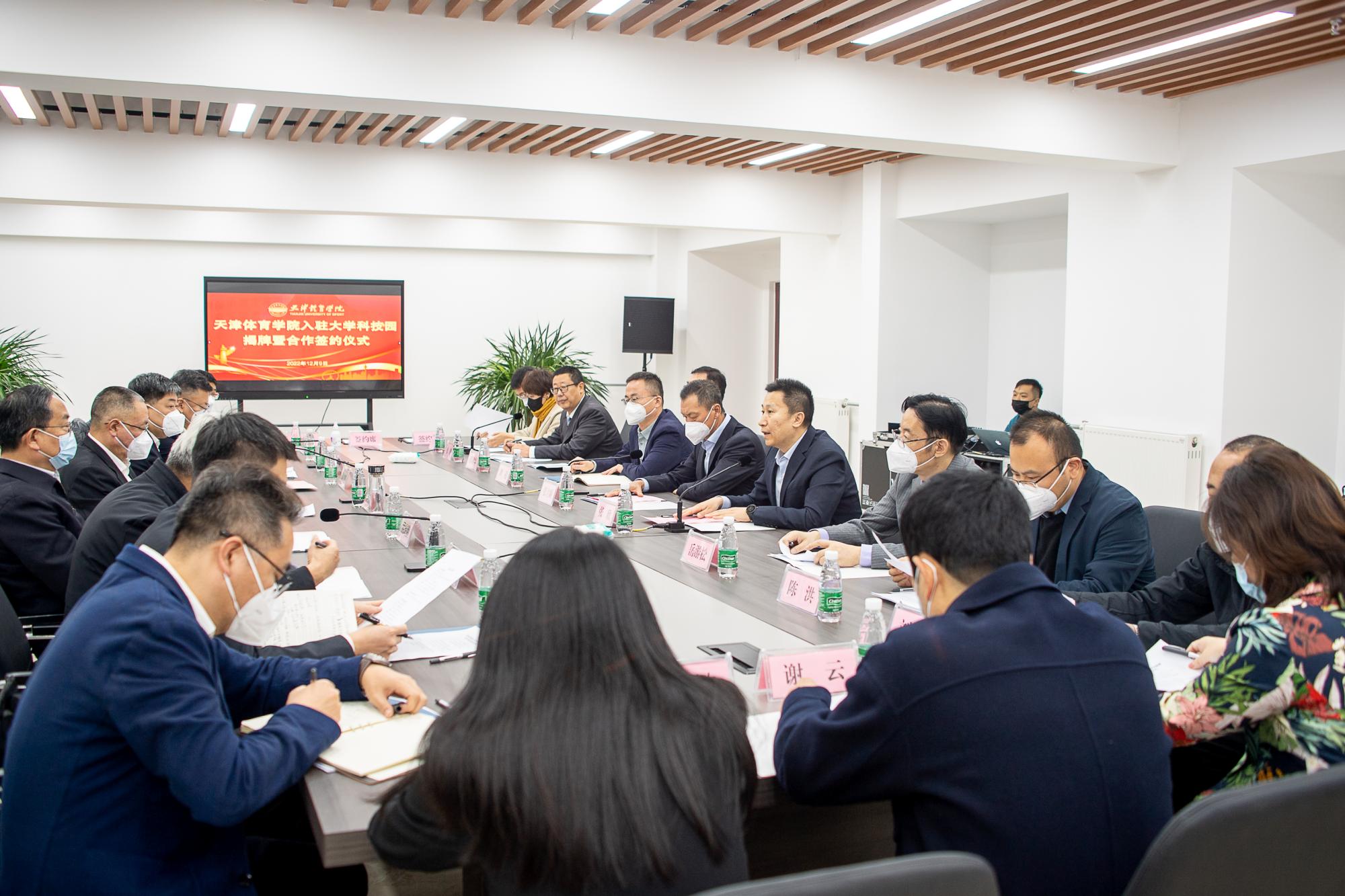 12月9日下午,best365中国官方网站入驻天津健康产业国际合作示范区大学科技园揭牌暨合作签约仪式举行。静海区委书记刘春雷、best365中国官方网站党委书记张立顺、天津中医药大学资产经营公司董事长孟昭鹏出席,并为best365中国官方网站产学研协同创新示范基地揭牌。静海区人大常委会副主任、合作示范区管委会党委书记高文智,副区长赵春兴出席。天津泰达洁净材料有限公司副总经理廖月娴、羽彤智能科技有限公司董事长孙羽以及天津中医药大学科技园发展有限公司负责同志,best365中国官方网站办公室、科研与研究生处、运动健康学院、体育经济与管理学院、竞技运动学院(竞技体育学校)负责同志及相关项目组负责人代表参加,揭牌暨合作签约仪式由best365中国官方网站党委副书记、院长张欣主持。