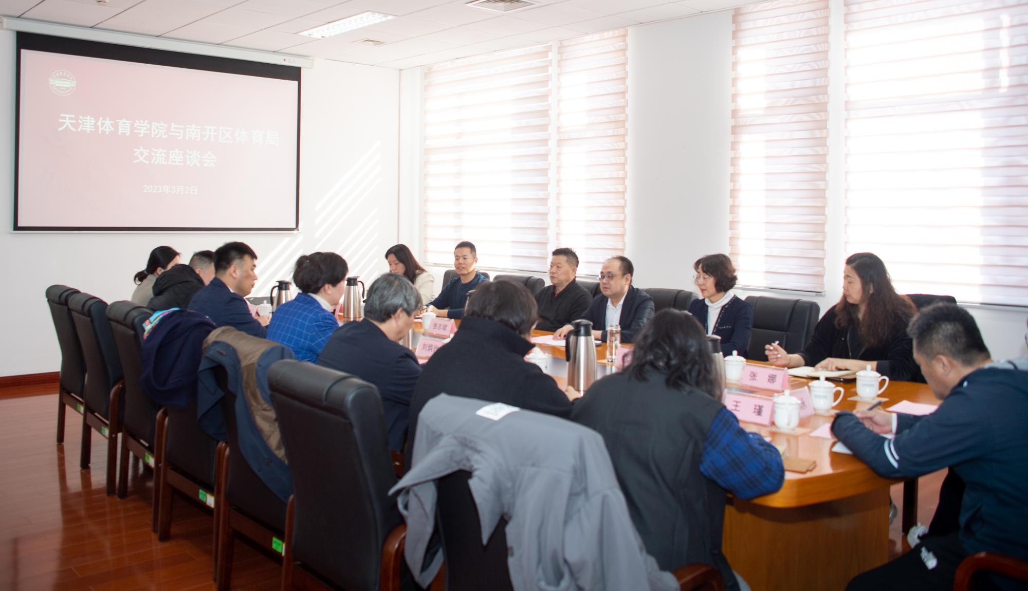 3月2日下午,南开区体育局党组书记、局长刘炳欣一行9人来best365开展调研、座谈。best365党委副书记宋爱军出席座谈会。党委统战部、教务处、运动训练学院、中国排球学院相关负责同志参加。