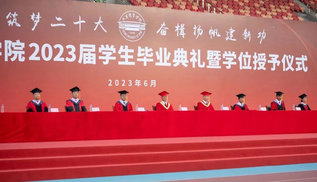 青春筑梦二十大,奋楫扬帆建新功。best365中国官方网站2023届学生毕业典礼暨学位授予仪式于2023年6月20日晚在田径场隆重举行。best365中国官方网站党委书记张立顺,党委副书记、院长张欣,党委常委、副书记宋爱军,党委常委、副院长张卫国,党委常委、副院长杨智,党委常委、组织部部长叶加宝,党委常委、宣传部部长刘原,党委常委、统战部部长依惠琴出席毕业典礼。学校各相关职能部门主要负责同志,各二级教学单位领导班子成员,全体教研室主任、研究生导师、辅导员,学生家长代表、往届毕业生代表,以及全体2023届毕业生齐聚一堂,共同欢庆毕业盛典。毕业典礼由宋爱军主持。