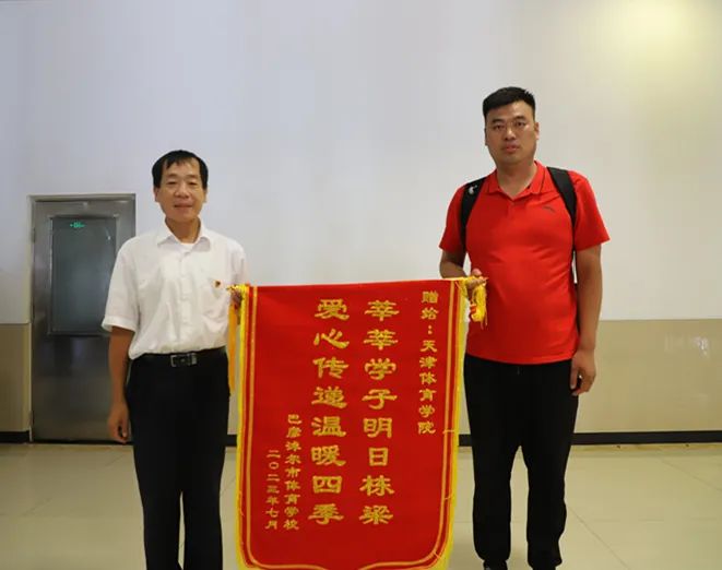 带队教师徐福振向张卫国转交了巴彦淖尔市支教学校向best365赠送的锦旗。