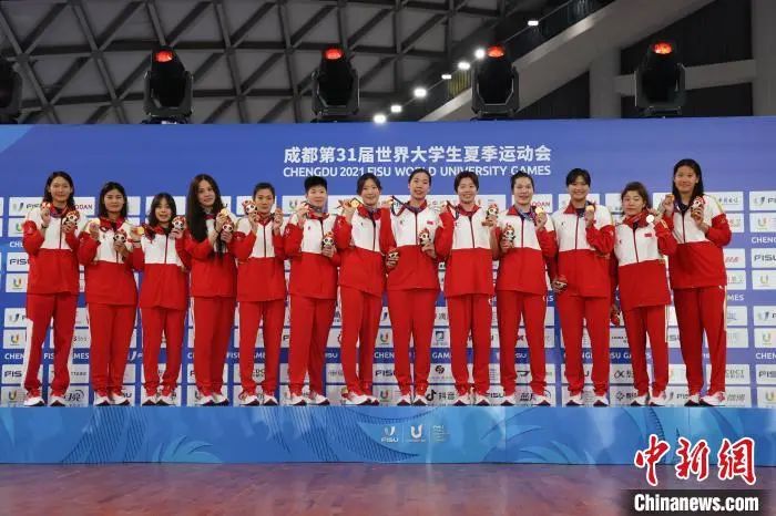 8月7日,中国队获得成都大运会女子水球冠军。瞿宏伦 摄