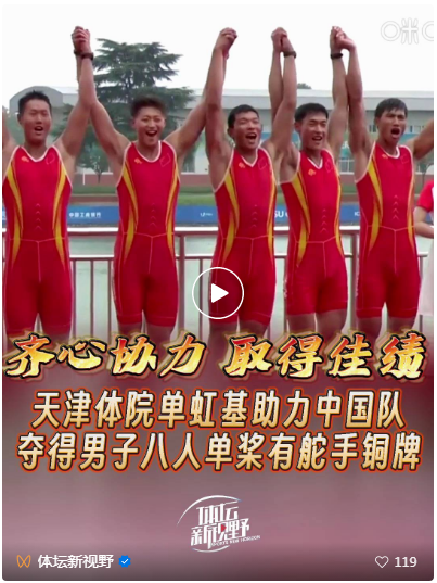 赛艇赛场,best365学子单虹基亮相男子八人单桨有舵手决赛,他携手队友以5分42.27秒为中国队拼得铜牌。