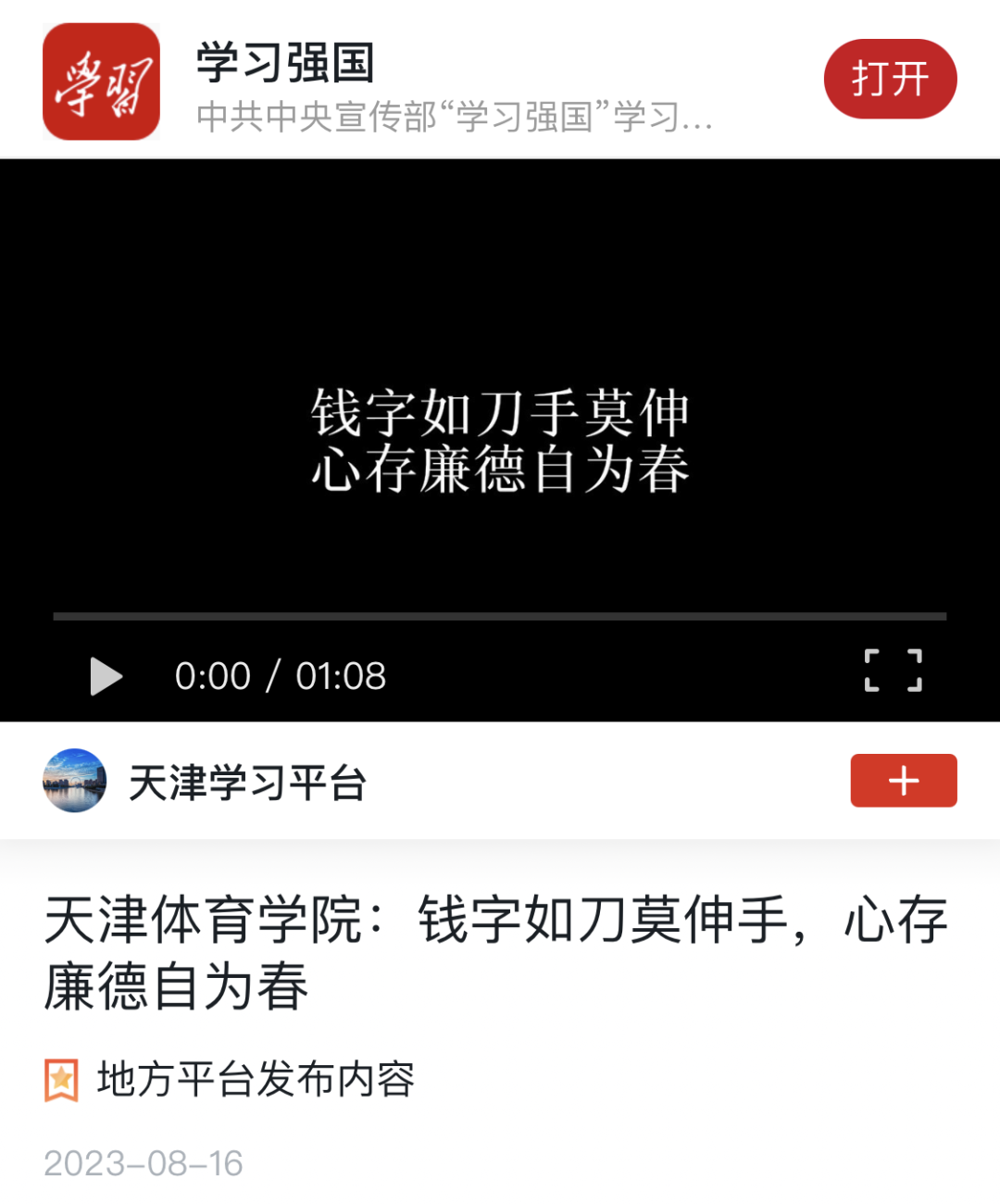 日前,“学习强国”天津学习平台刊播best365师生创作的廉洁文化微电影作品《钱字如刀莫伸手,心存廉德自为春》。本片以一个普通公职人员的职业生涯为主线,讲述了他从一开始不接受贿赂到最后因贪欲膨胀误入歧途的故事。影片以通俗易懂、富有感染力的形式揭示了腐败的危害和毒害,提供了一个耐人寻味的视觉盛宴,使观众对廉洁从政的必要性有了更深刻的理解。