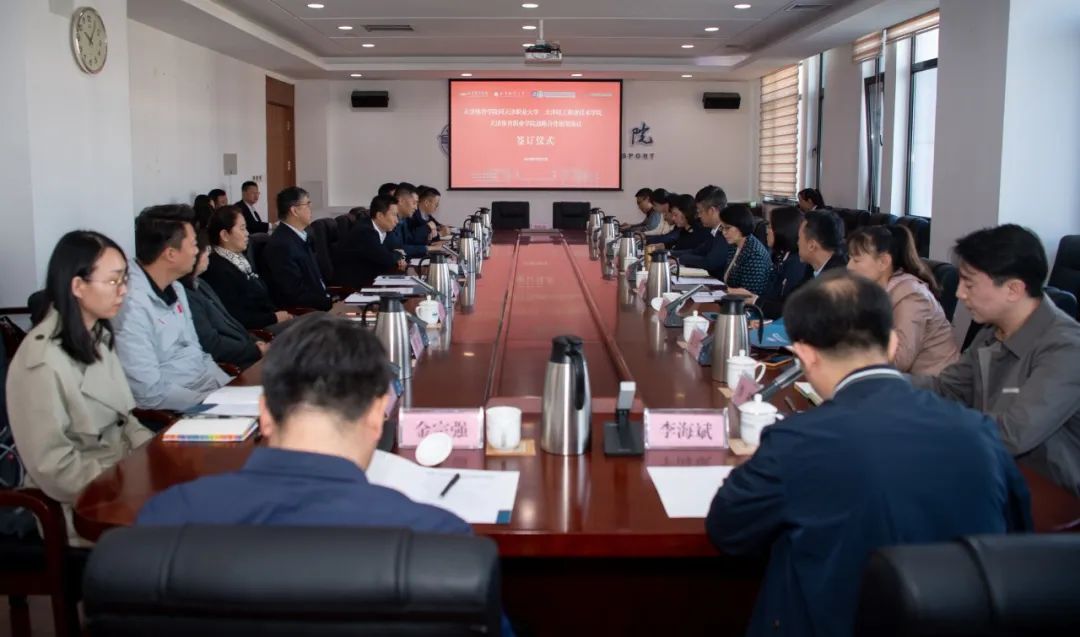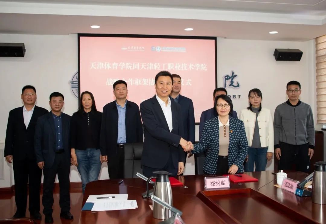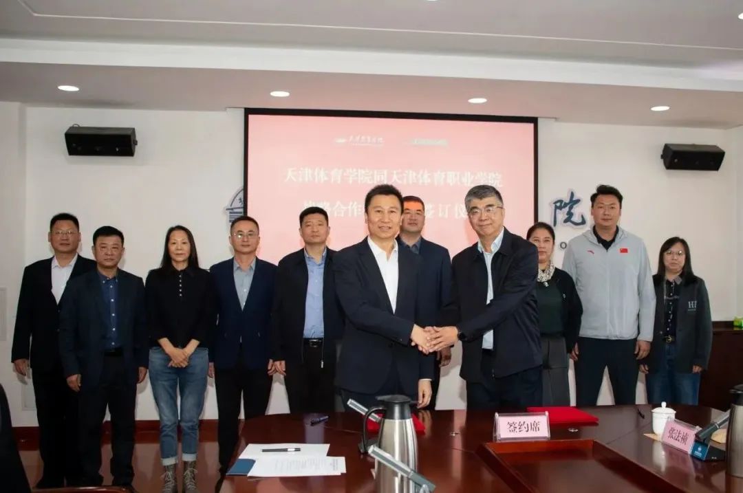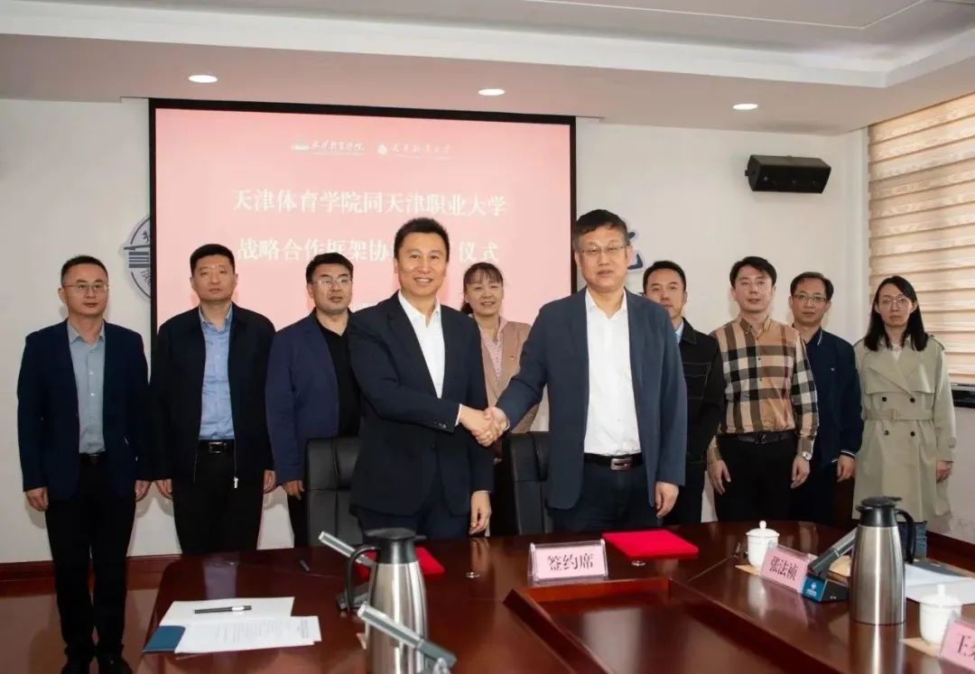 2023年10月27日,best365中国官方网站同天津职业大学、天津轻工职业技术学院、天津体育职业学院战略合作框架协议签订仪式在best365举行。天津市教育委员会发展规划处副处长李清,天津市体育局宣教法规处副处长王笛,天津职业大学党委副书记、校长郑清春,天津轻工职业技术学院党委副书记、院长李云梅,天津体育职业学院党委副书记、院长王伟,best365中国官方网站党委副书记、院长张欣,以及四所院校的相关职能处室领导出席了会议。会议由best365中国官方网站副院长杨智主持。