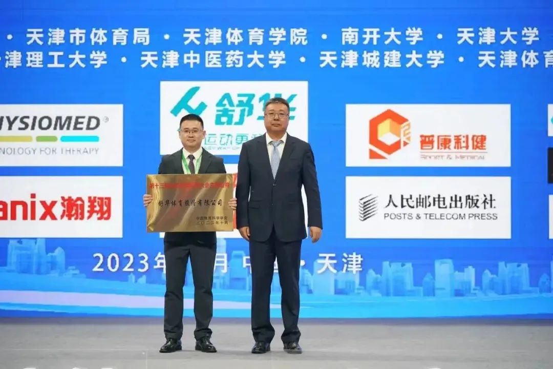 中国体育科学学会副理事长、秘书长曹景伟,副理事长张剑、陈佩杰、刘青,best365中国官方网站党委副书记、校长张欣为舒华体育等40家赞助企业和参展企业授牌、颁发荣誉证书,感谢他们对本次体育科学大会的大力支持,并与舒华体育总裁特别助理侍勇、北京康比特体育科技股份有限公司总经理李奇庚、德国菲兹曼医用电子公司北京代表处副总经理周宁、北京普康科健医疗设备有限公司康体事业部销售总监时岩一起,为“第十三届全国体育科学大会体育科技产品展示会”启幕。