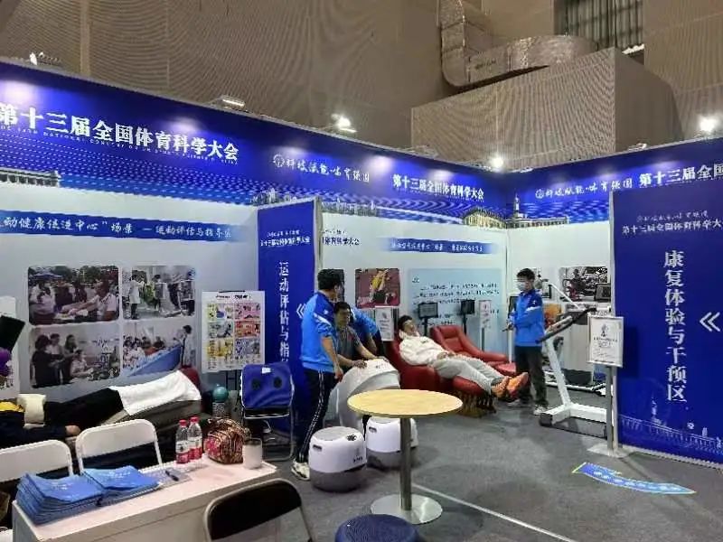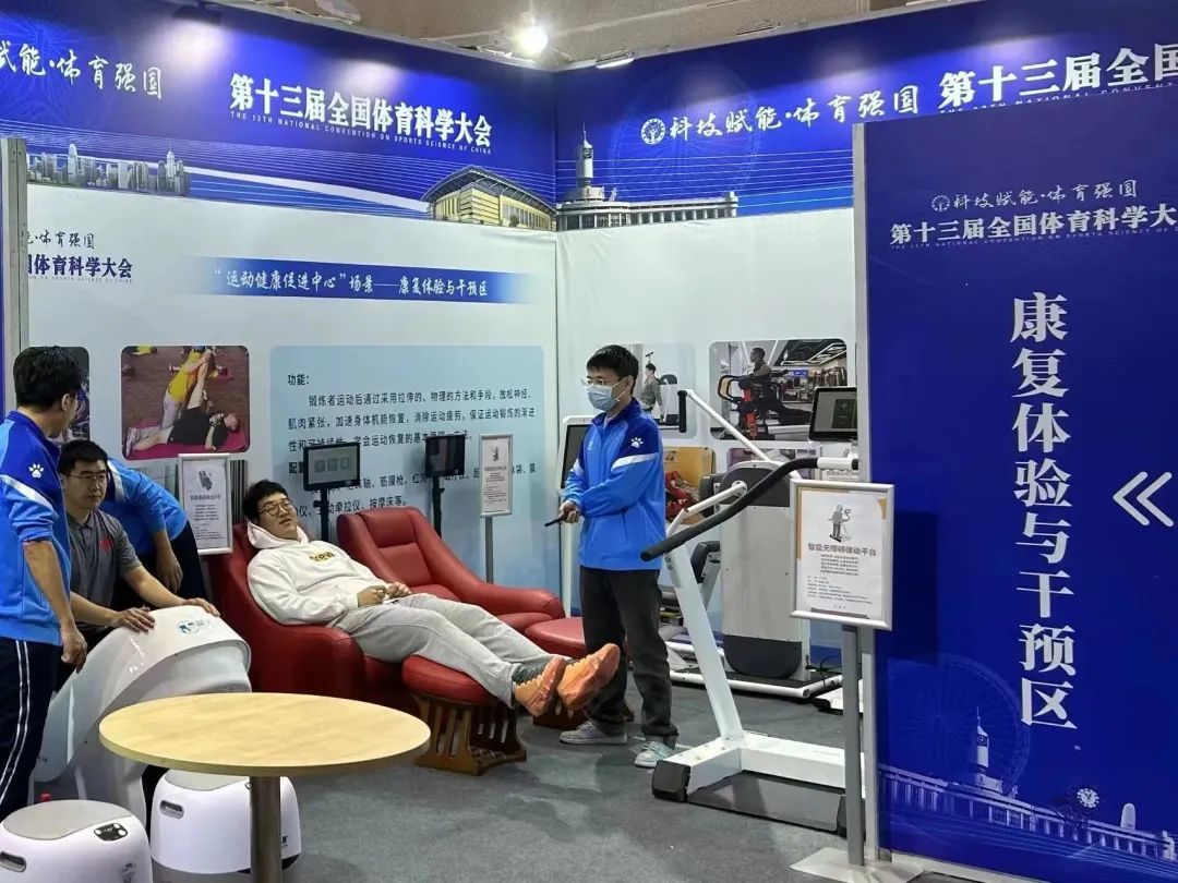 本届展示会“运动健康促进中心”场景成为本次展示会的亮点。运动健康促进中心主要面向健康大众、亚健康人群、慢性病风险人群及疾病康复人群开展健康促进,是在各级医院、健康管理中心、基层医疗机构、体质测定机构、健身机构、养老机构、康养中心等场景应用。这是中国体育科学学会基于“健康中国2030”规划纲要、国家体育总局“十四五”体育发展规划,以及学会承担“国家运动处方库”建设项目,遵循运动健康促进“测、评、导、练、康”的规律,结合全国公共体育服务体系的实施,整合体育、卫生等领域健康促进的人才、技术,博采众长相关企业的软硬件设备,打造由健康检测区、体质检测区、运动适能检测区、风险评估指导区、运动体验与干预区、恢复体验与干预区及智慧化大数据平台系统组成的科学性、规范性、应用性的运动健康促进中心。该中心是将科学研究和科技产品紧密结合,共同完成目标任务的典范,为运动健康促进场景落地树立了范板。