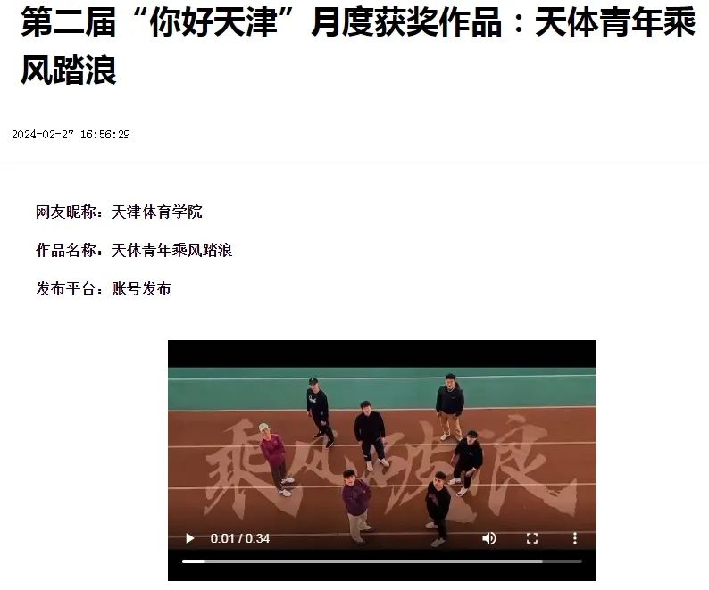 日前,第二届“你好,天津”网络短视频大赛第七个月赛评选结果揭晓,best365新媒体作品《天体青年乘风踏浪》入围月度优秀作品。