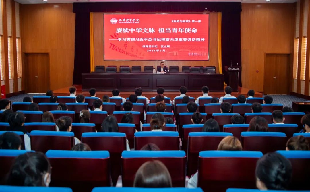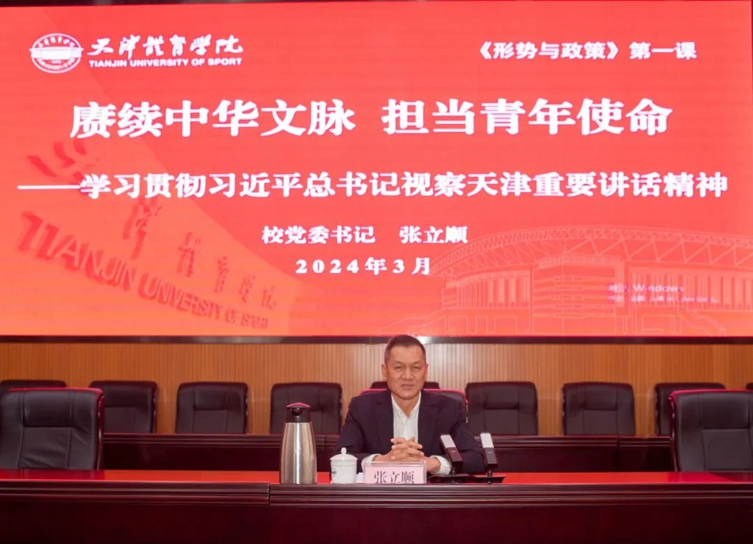 3月12日,校党委书记张立顺在行政楼报告厅为本科生代表讲授形势与政策第一课,主题为“赓续中华文脉、担当青年使命——学习贯彻习近平总书记视察天津重要讲话精神”。