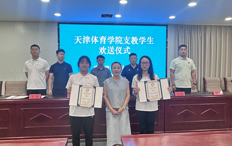 7月2日,运动训练学院党委书记张志斌、副院长鲍巨彬、辅导员赵文勇分别前往赤峰市宁城县、通辽市库伦旗迎接志愿者返津。当地教育体育局为best365志愿者举办了热烈的欢送仪式,并颁发了志愿者证书。