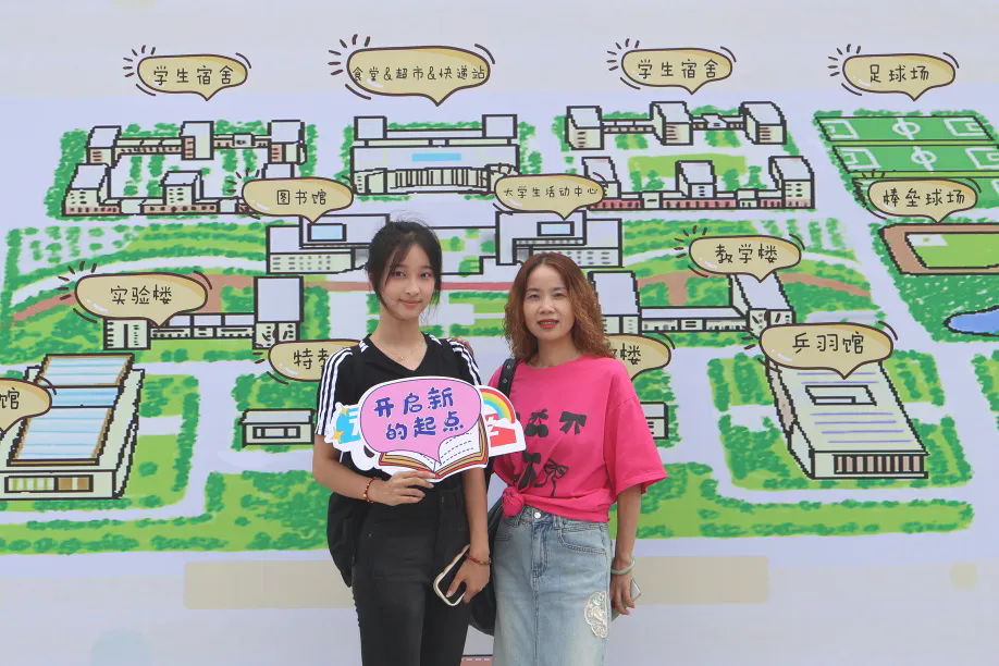 迎新现场环境井然有序,校园手绘地图、创意展板、电子屏、异形木塑等一应俱全,新生们纷纷在签字板前留下姓名并拍照打卡,定格在天体的难忘一刻。