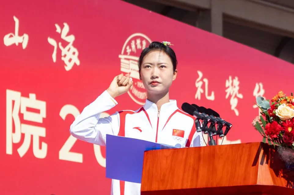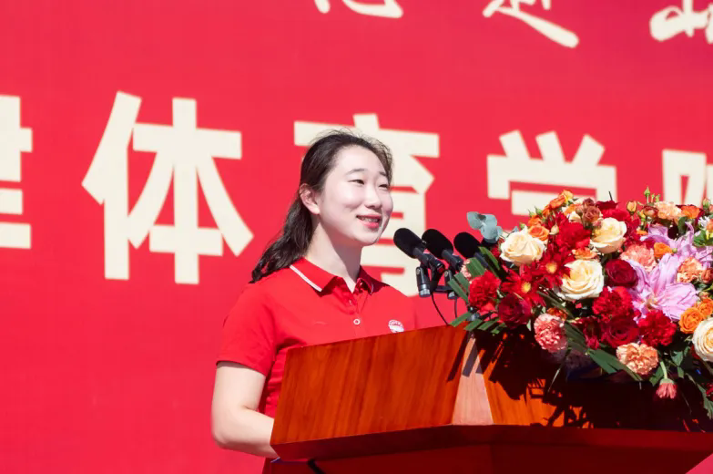 新生代表李红分享了她作为中国女子曲棍球队副队长和队友在巴黎奥运会征战赛场的动人故事,鼓励“新天体人”传承体育精神、普及全民体育,肩负起体育强国的责任与担当。