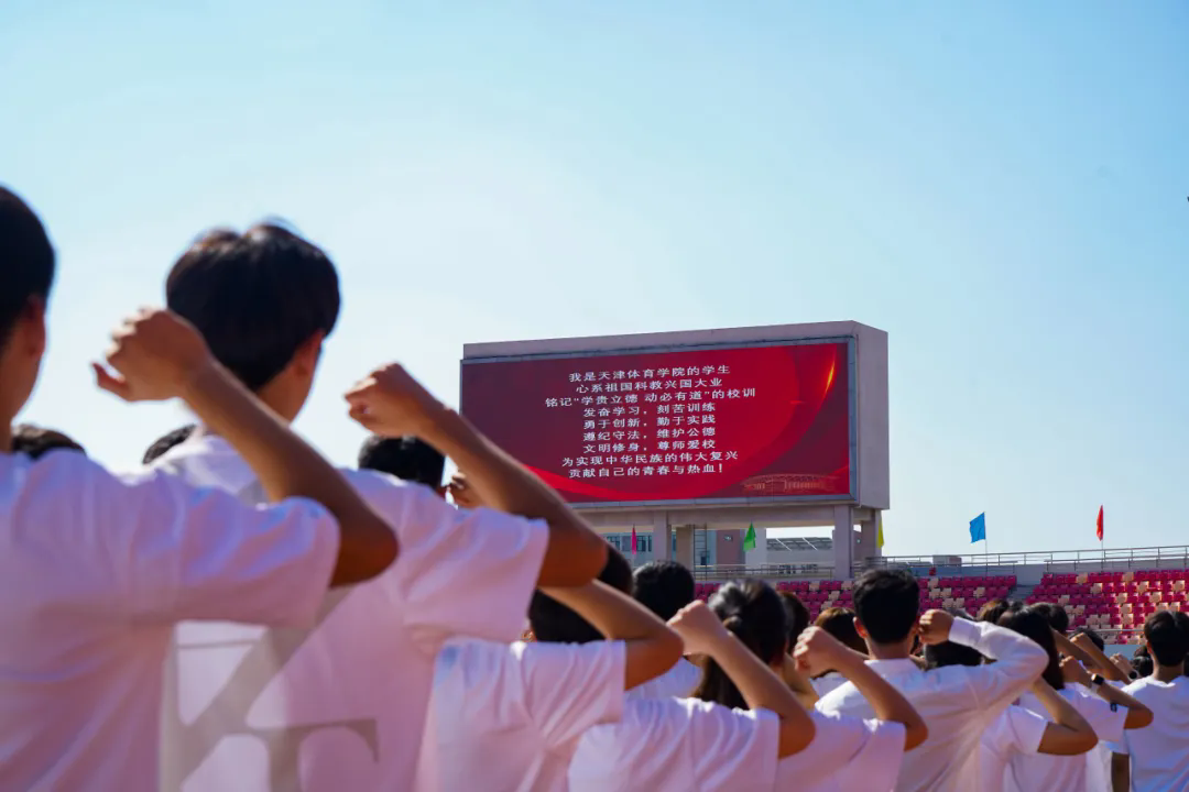 全体新生庄严宣誓,步入天体校园后将把奋斗作为青春的底色,在奋斗中活出青春的精彩,努力以更加优异的成绩为学校添彩。